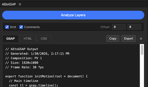 【2月20日17時まで特別価格で提供】After Effectsで制作したアニメーションをGSAPやHTML、CSSでのエクスポートを実現するエクステンション