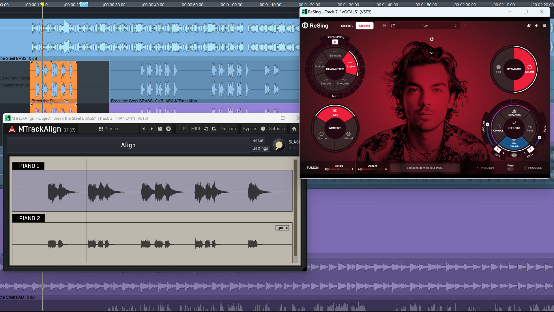 リアルタイム処理に依存する従来のVSTプラグインとは異なり、MTrackAlign や ReSing は、再生中でなくてもオーディオクリップ全体を同時に解析・処理・補正することが可能です。これにより、書き出しやファイルの手動移動を行うことなく、より高精度な解析と補正を効率的に実行できます。
