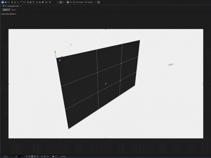 プラグインを利用することでAfter Effectsのネイティブツールでは実現不可能な曲がりや曲線を持つ3Dサーフェスを生成することができます。コントロールはサーフェス上の16個の制御点やライン、オブジェクト全体が可能でエフェクトコントロールのInteraction Modeから選択します。また、サーフェス上の制御点をヌルなど任意のレイヤーに接続することができるため、各点を個別にアニメーションすることができます。Foldspaceを適用した各面にはテクスチャの割り当てに対応、エフェクトコントロールのSurfaces > Materialから各面へのマテリアル適用を実現します。