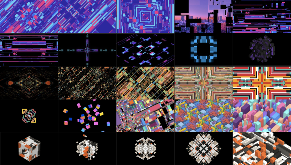 シンメトリーやHUD、グリッチ、幾何学的なスタイル構成など、高度な 3D セットアップを活用してモジュール形式のコンポジションを作成します。